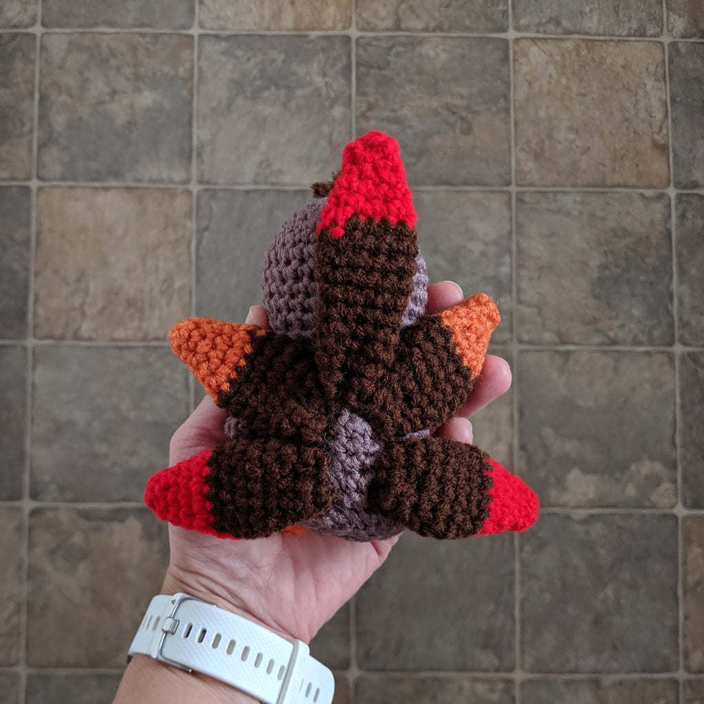 Rnd1: Starting at the tip of your wing with brown yarn sc x 6 in a magic ring, or ch x 2 and do 6sc in the second chain from your hook (6)