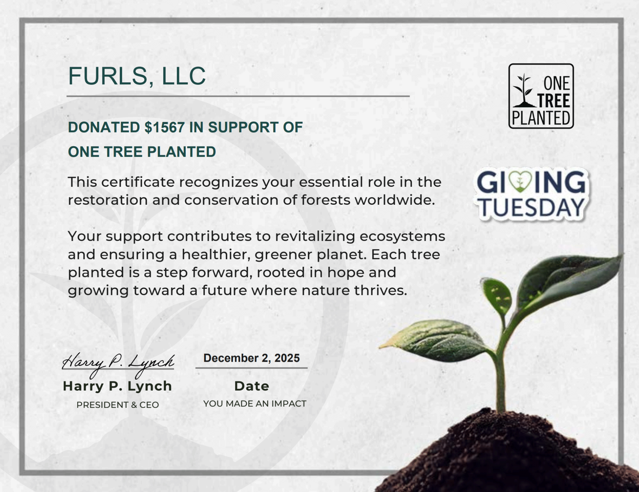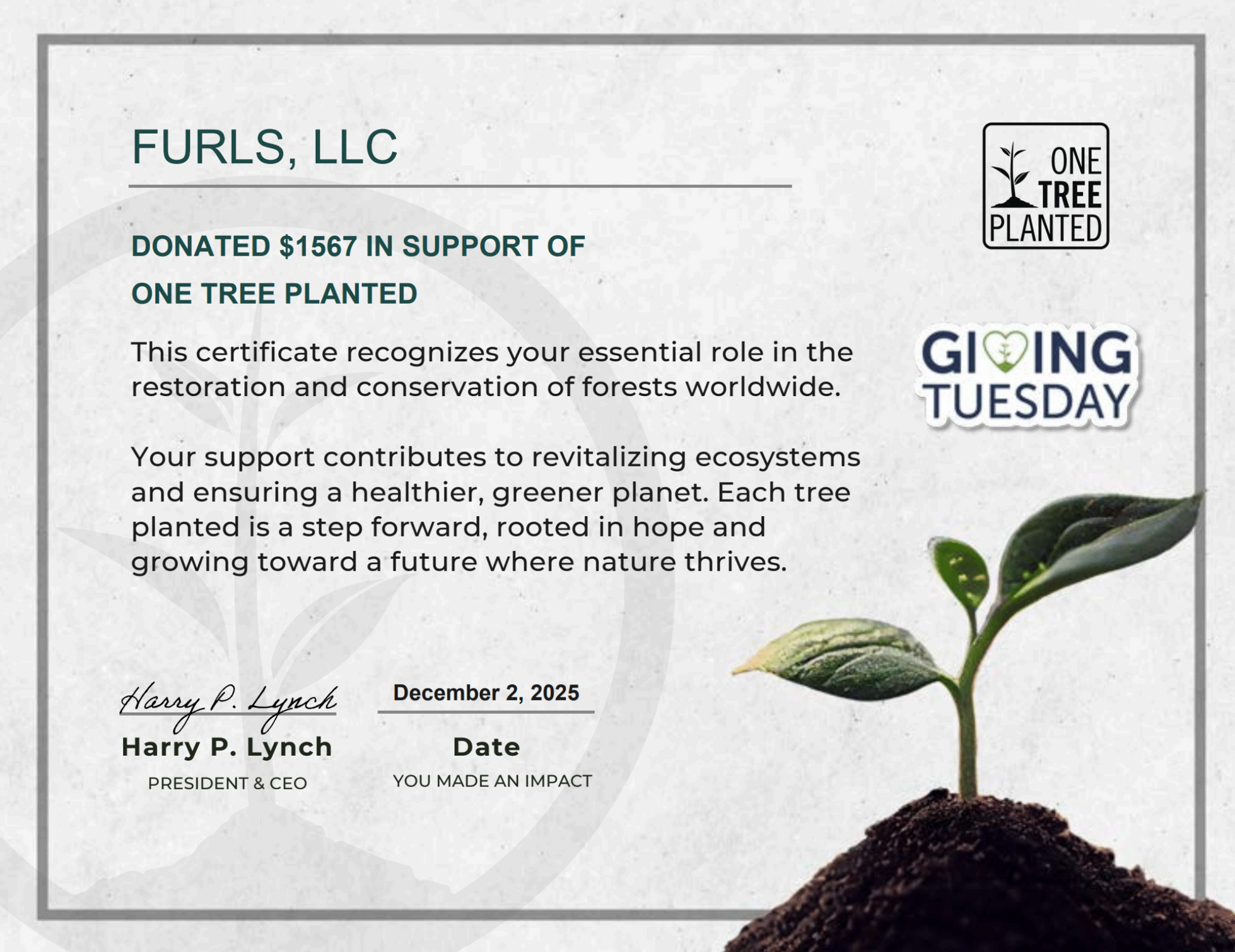 For transparency, Furls provides a record of the past 12 months of donation certificates, below.