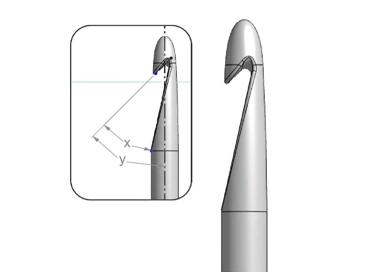 The height of the hook's head is carefully matched to the shaft diameter to ensure smooth stitching and reduce fatigue.